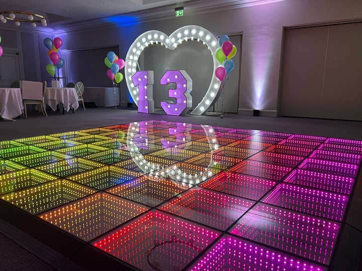 The LED dance floor’s variety of visual effects makes it modern, trendy, and perfect for any party. Imagine a dance floor that can produce 3D infinity visuals, romantic starlight, stunning patterns, interactive effects, or even display texts. These capabilities bring a fresh twist to any celebration, making it a hot favorite in many decorations for party ideas on social media.