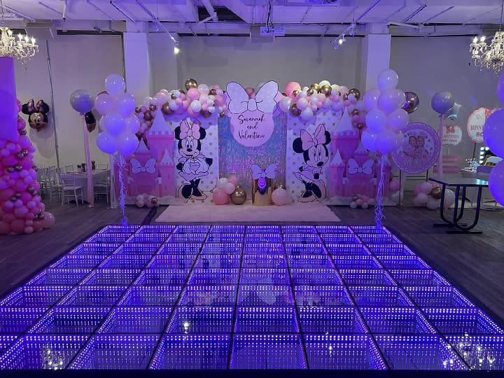 The LED dance floor is lit by mix RGB effects, solid colors, starlit effects,3D mirror effect etc. Bring your party to life with cool light shows right beneath your feet.