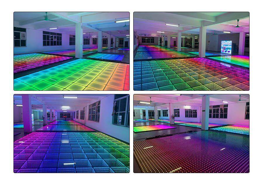 The LED dance floor provide mix RGB effects, solid colors, starlit effects and even words typing. It can present a wide color range to bring you an extremely amazing party.