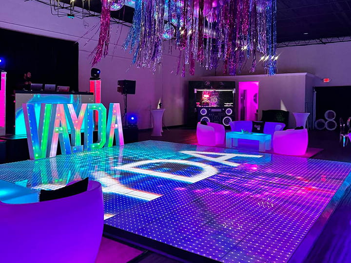 The LED dance floor provide mix RGB effects, solid colors, starlit effects and even words typing. It can present a wide color range to bring you an extremely amazing party.